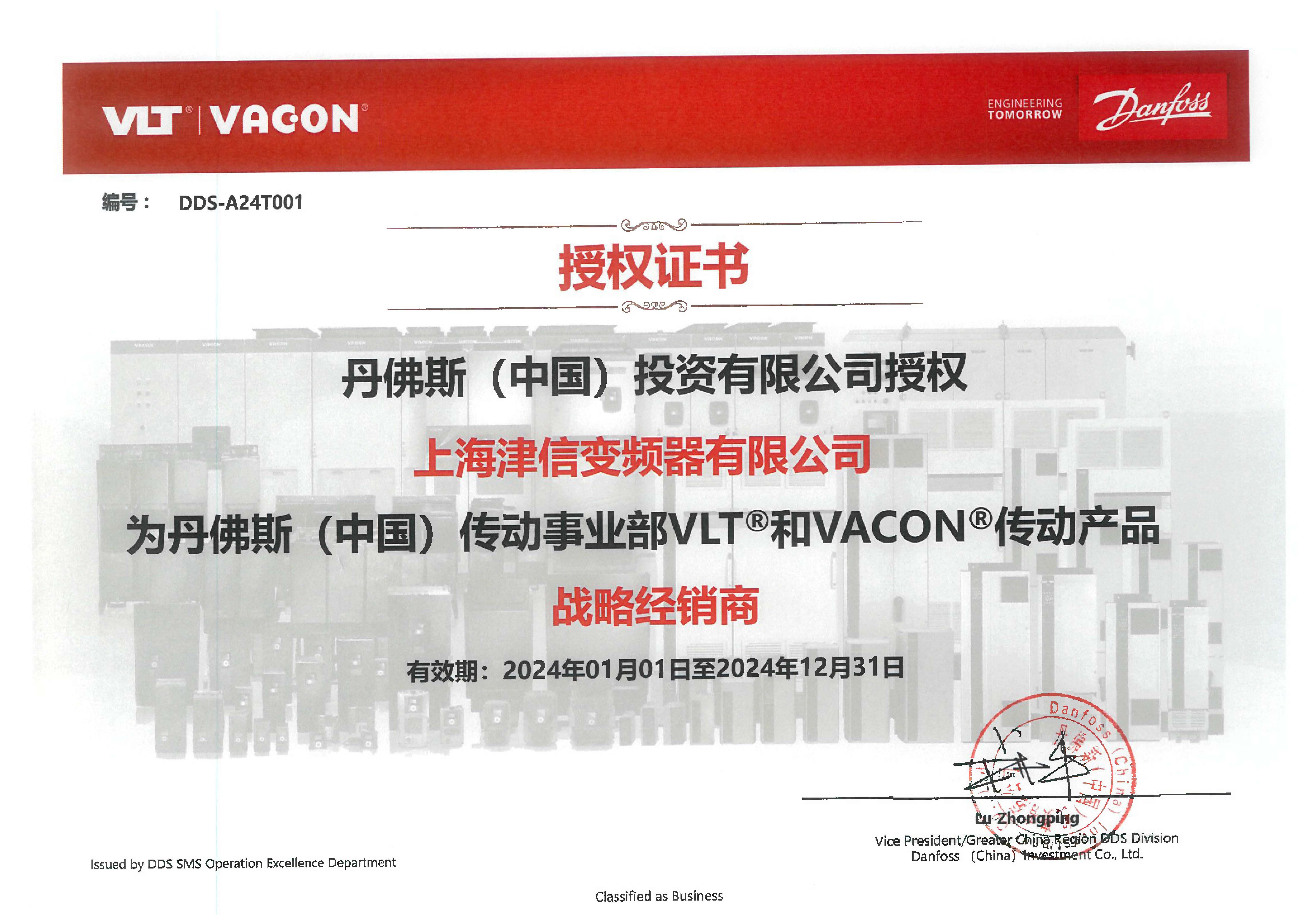 丹佛斯戰(zhàn)略經(jīng)銷商證書